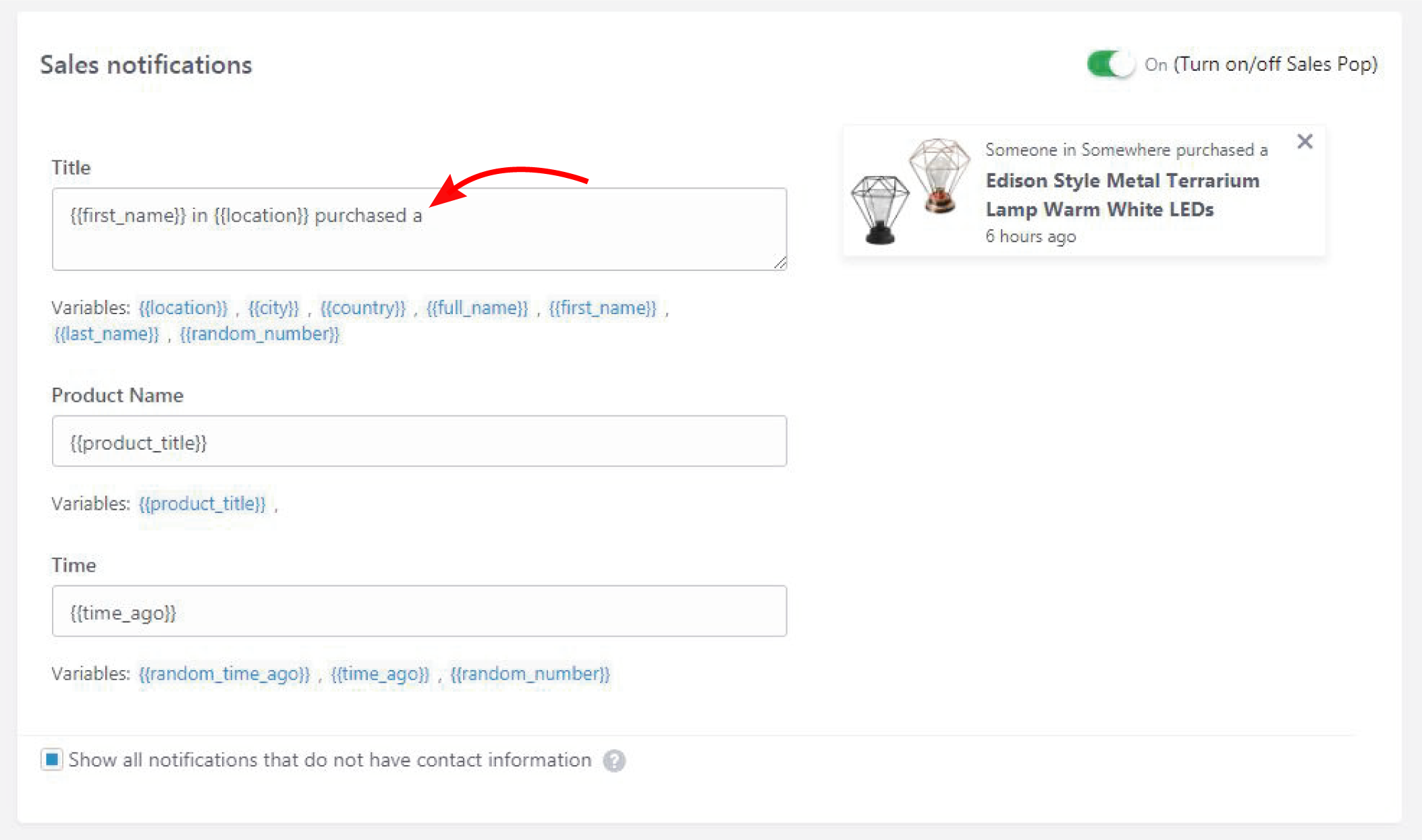 Kindly go to App admin >> Setting tab in the sidebar menu >> Sales notifications section.